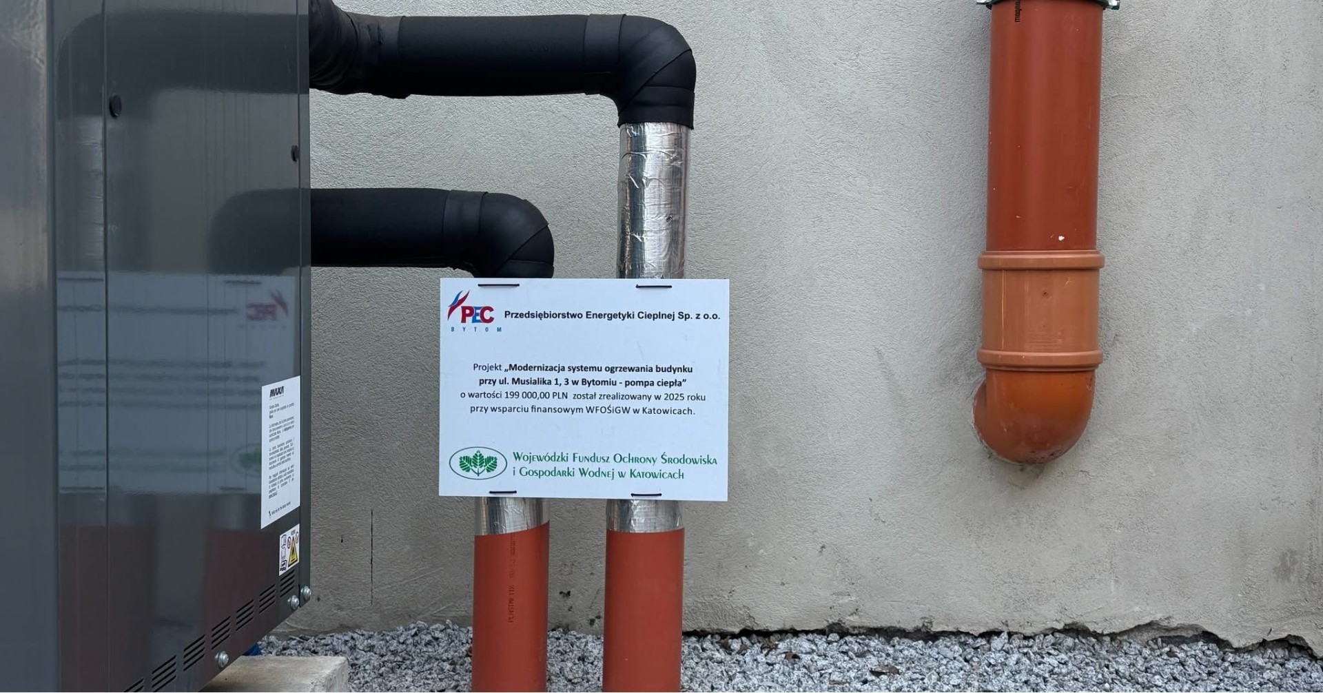 Inwestycja została zrealizowana przy wsparciu środków WFOŚiGW w Katowicach. Dofinansowanie na budowę przyłącza i węzła cieplnego wyniosło 1 127 604,00 zł, a w ramach programu „OZE na start” przyznano dodatkową dotację w wysokości 58 500,00 zł. Nowoczesna infrastruktura energetyczna to większe bezpieczeństwo dostaw ciepła i realne korzyści środowiskowe dla Miasto Bytom.